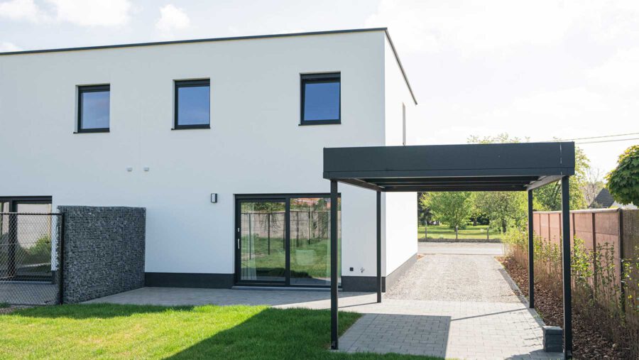 Een aangename buitenruimte is de afgelopen jaren belangrijker geworden dan ooit. Daarom is elke GL-Woning uitgerust met een eigen terras, waartoe je toegang hebt via een schuifraam. Connectie met de tuin is dus verzekerd. Er wordt aan elke woonst een afsluiting geplaatst, wat zorgt voor privacy tijdens het zonnebaden, barbecueën of buitenspelen. Ook is er een carport voorzien voor de bescherming van je wagen.