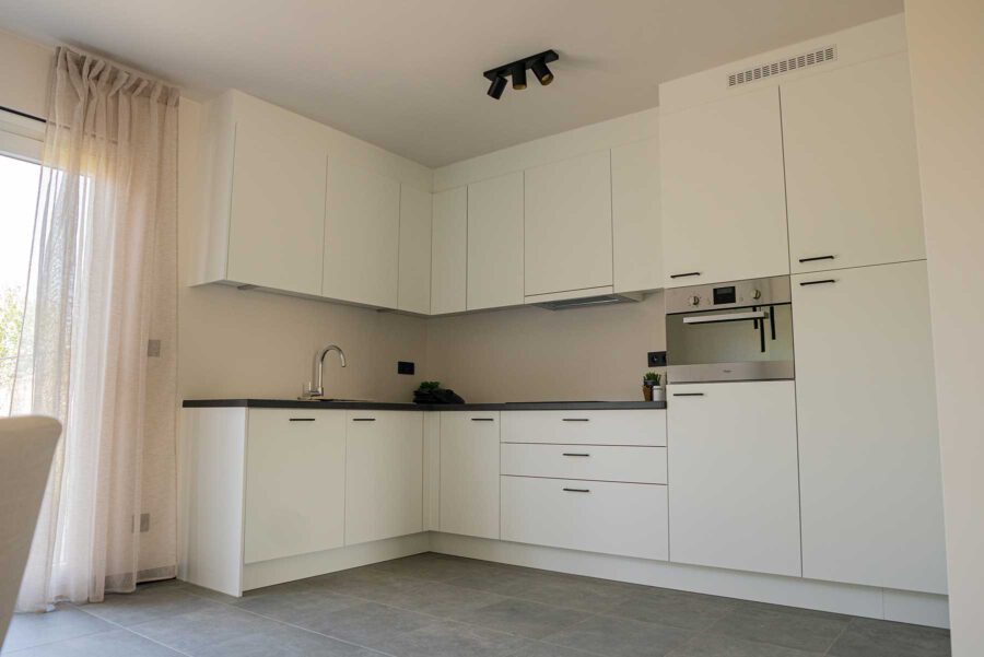 De woning wordt volledig voor je gevloerd en is dus vanaf het moment dat je de sleutel ontvangt klaar om bemeubeld te worden. Ook de badkamer en keuken zijn al helemaal geïnstalleerd, zodat je meteen kan genieten van je nieuwe woonst.